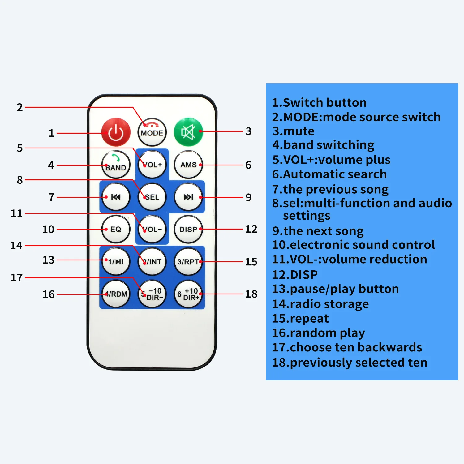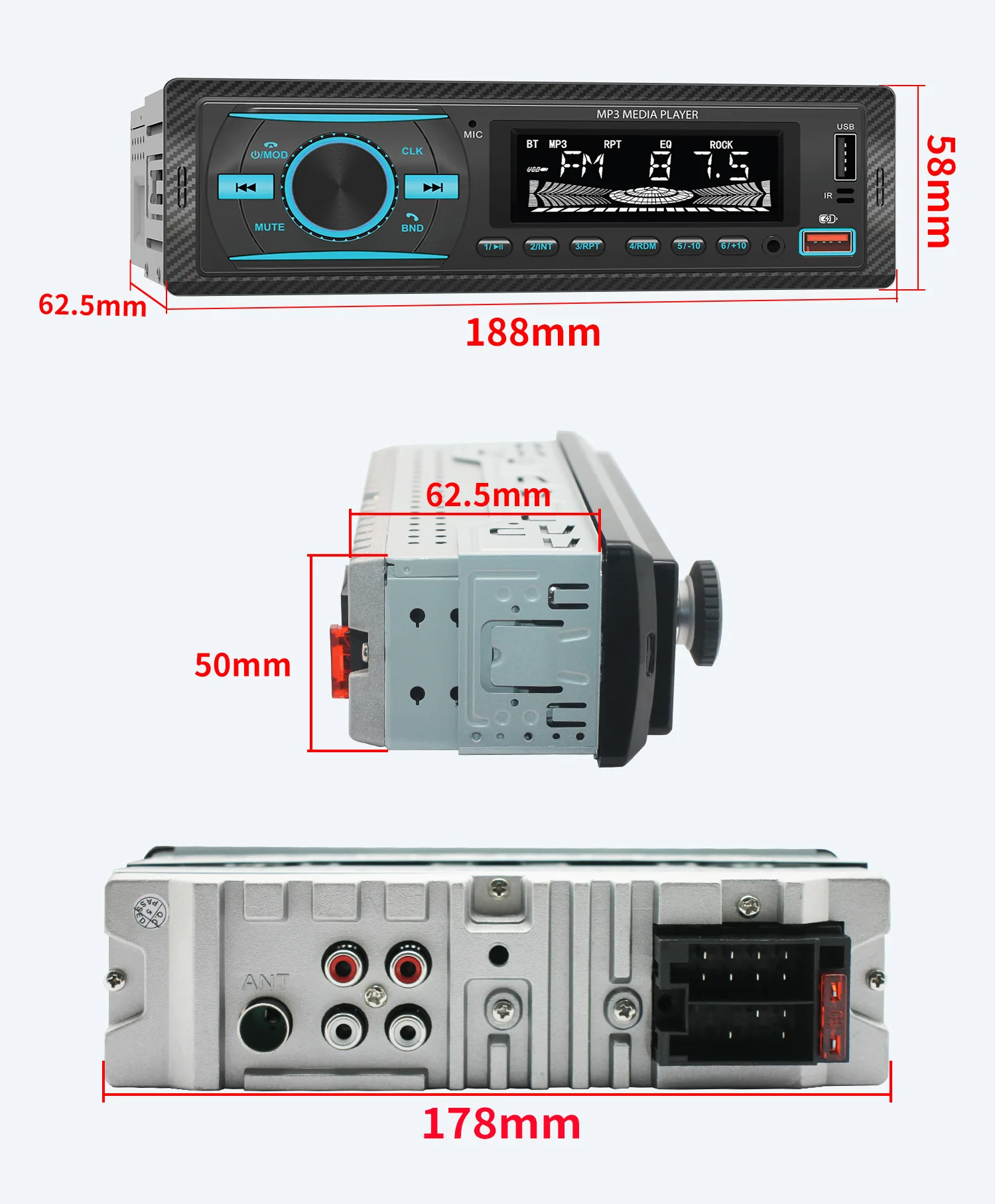 *Support tri-band FM1-FM2-FM3 station storage, 18 stations can be tuned. (RF: 87.5-108MHz)
