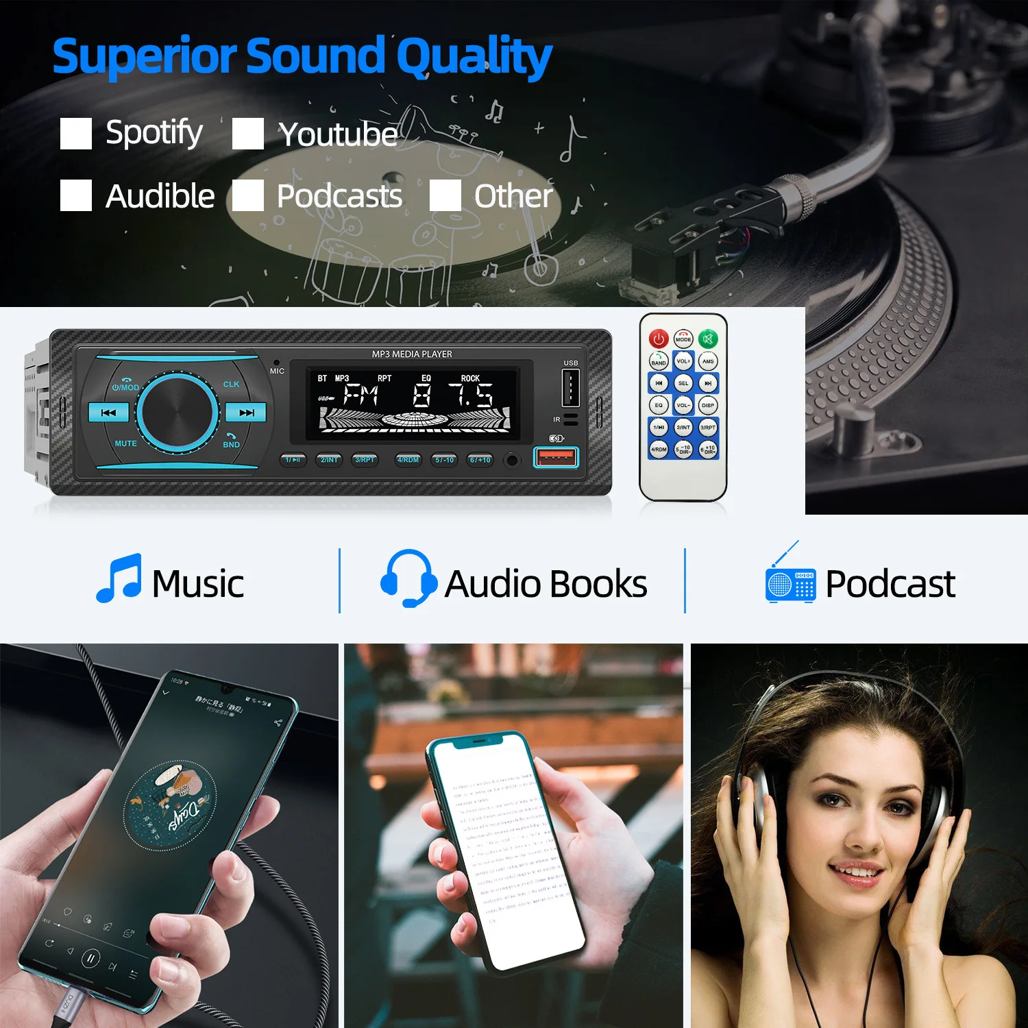 * Supports Mp3/wma/wav high-fidelity audio format, songs download more than 320KBS Code Rate, sound double;